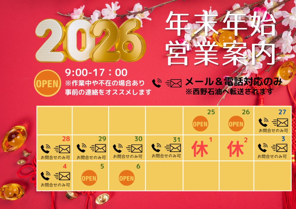 今年も1年ご愛顧賜り、誠にありがとうございました。年末年始の営業は上記の通りです。よろしくお願いいたします。